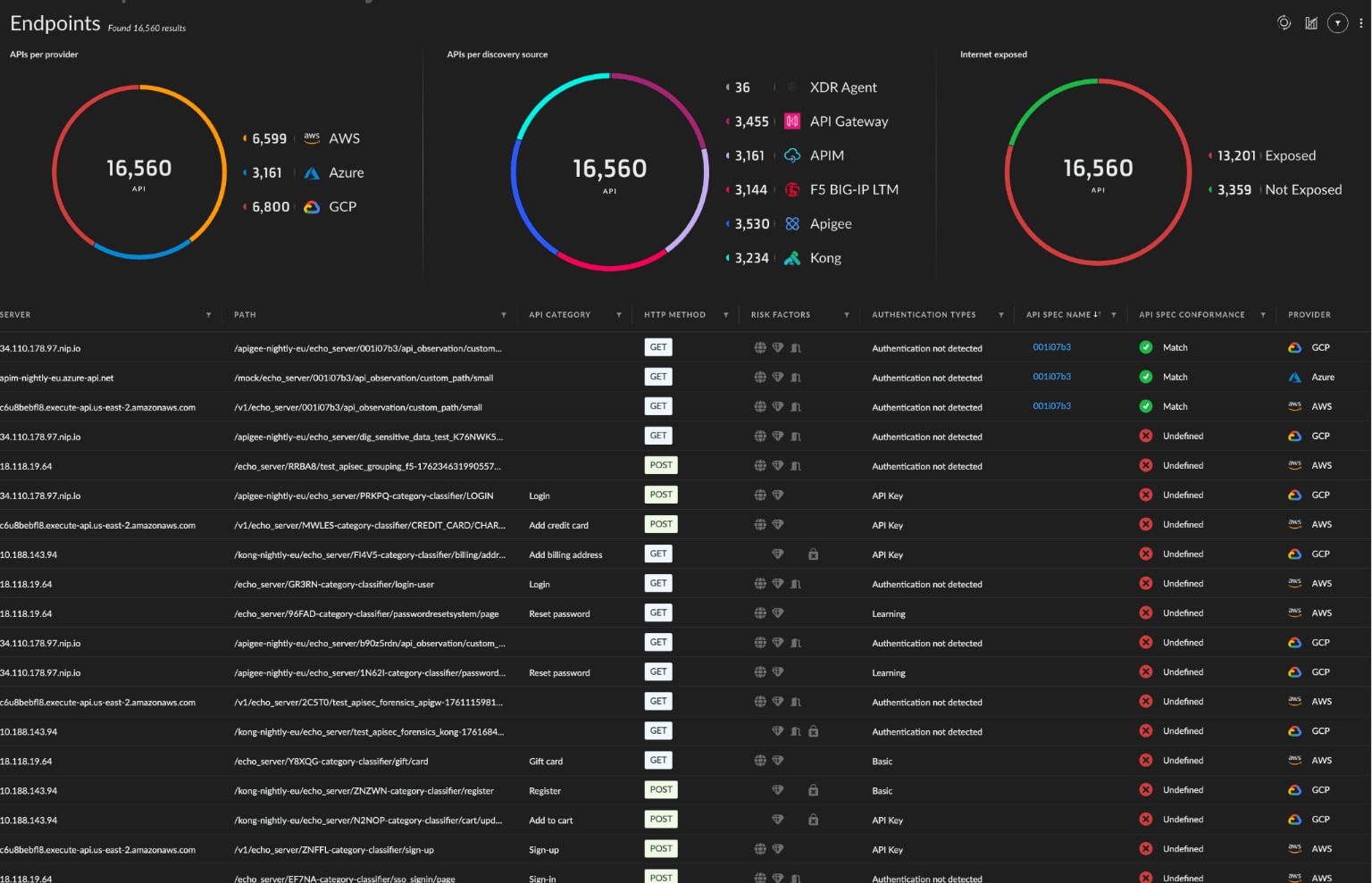 全面了解整个 API 的情况,消除盲点。跨网关、工作负载和云环境自动发现和验证 API。揭示影子、僵尸和未托管的 API,实现完全的可视性和控制。