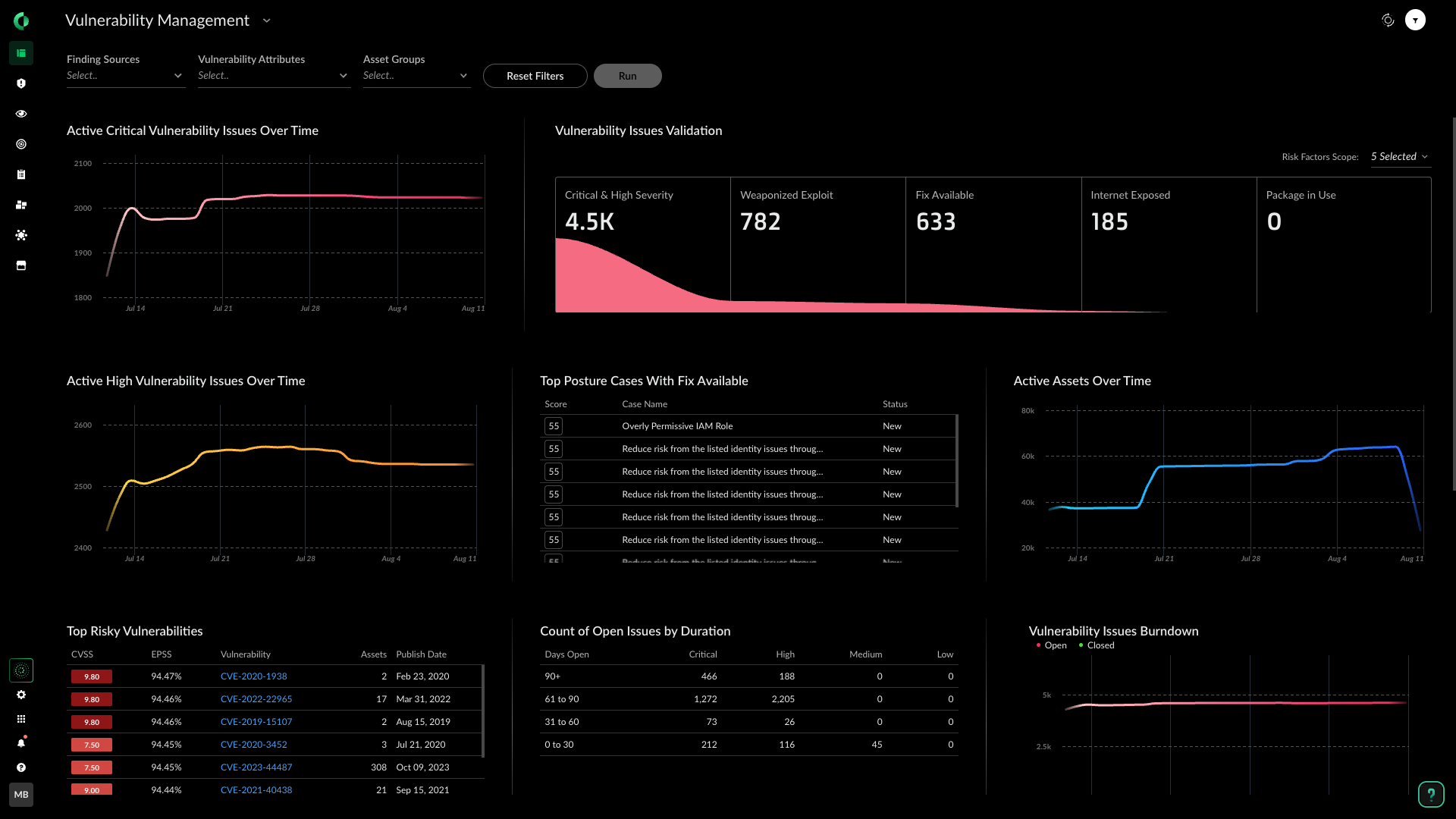 利用外部暴露、过多权限、错误配置、敏感数据、机密和恶意软件等相关风险因素,浮现关键漏洞,从而确定风险优先级,减少警报疲劳。