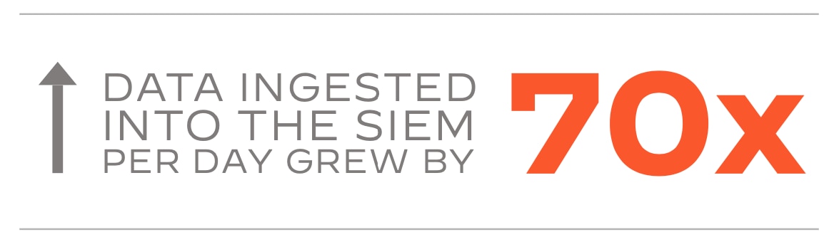 由于成本高、工程难度大,安全团队对是否在之前的 SIEM 中添加数据源犹豫不决,而 Cortex XSIAM 使 Boyne 能够添加多个新数据源,并将摄取的数据量提高了 70 倍。