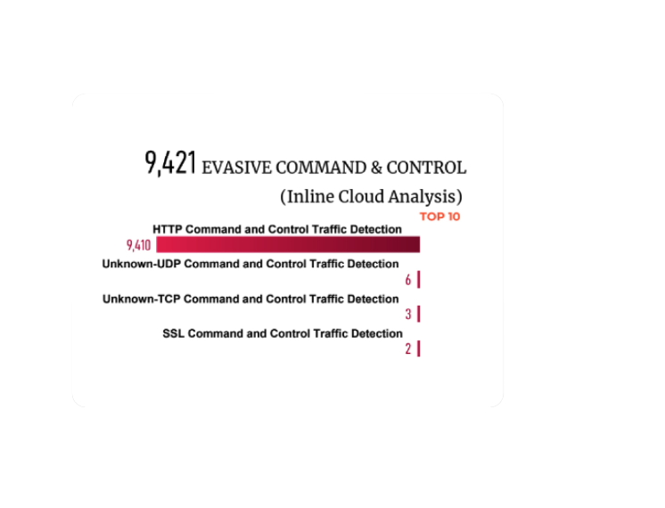 识别前所未见的新攻击,如 Cobalt Strike 等红队工具传播的 C2 流量、恶意 DNS 流量、规避性网络钓鱼攻击和多态恶意软件。